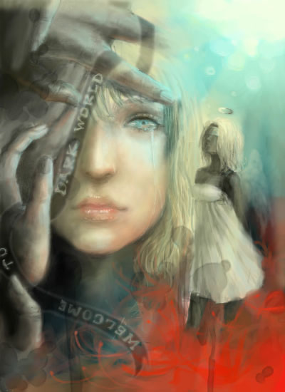 この前の、天使が目隠しされてる絵の続きです。